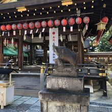 京都御所の西、烏丸通り沿いに位置し、平安京造営に尽力した和気清麻呂を祀る神社です。清麻呂が道中、足を痛めた際300頭の猪に助けられた事にちなんで、神の使いとされる狛いのししが拝殿前に置かれています。他にもいろんなところにいのししがいるので見て回るのの楽しいです。