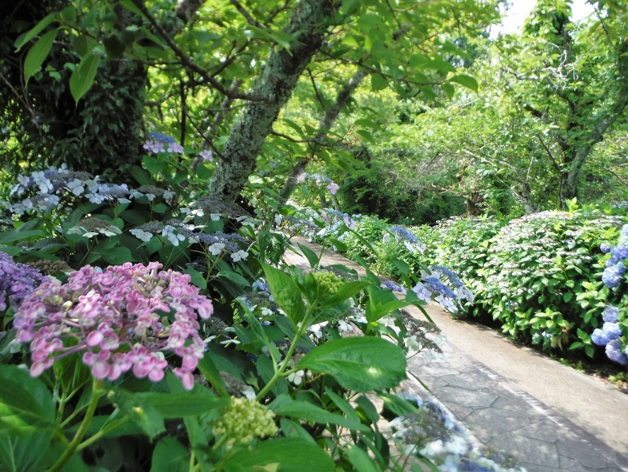 紫陽花寺として知られる長法寺。明治6年の津山城取り壊しの際、紫陽花を描いた腰高障子が贈られ、それをきっかけに紫陽花を植えはじめたそうです。紫陽花の開花の時期には多くの人が訪れます。道を挟んで山側には綺麗な多宝塔があります。