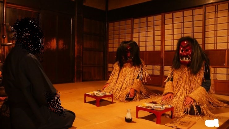 古民家の和室に座り、まずはなまはげ文化について解説を聞く。なまはげの風習について理解したあとは、実際になまはげが訪れ、主人がもてなし、退出するまでを見ることができる。