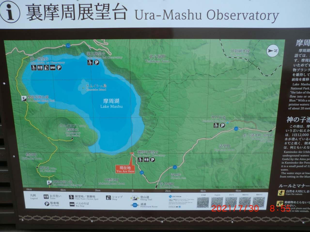 養老牛温泉から摩周湖と屈斜路湖を巡って女満別空港に行く予定でした。摩周湖では第一展望台に行く予定でした、しかし第一展望台は霧で全く見えないとの情報、ここ「裏摩周湖展望台」だけ、少し湖が見えることが分かり変更しました。
