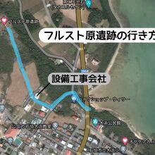 行き方は写真の地図を参照して下さい。途中、設備工事会社の敷地内を抜けます。道でもあるので通っても大丈夫です。その先は未舗装の農道のような道ですが、車もなんとか通れます。駐車場らしきものはありませんが空いてるスペースに適当に駐めても大丈夫だと思います。