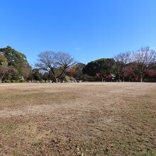 名古屋城二ノ丸は天守のある本丸の東側、中央に名勝二ノ丸庭園、東側に二ノ丸東庭園などが広がるエリアですが、二ノ丸広場はそのなかで西寄り、本丸寄りにあります。正門から入城して清正公石曳きの像と東南隅櫓を確認して東側を向くと、広大な芝生が広がっていました。イベント会場などにも利用される場所だそうです。