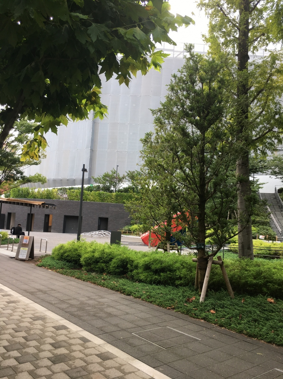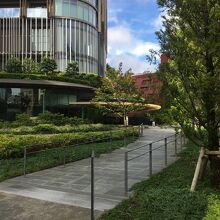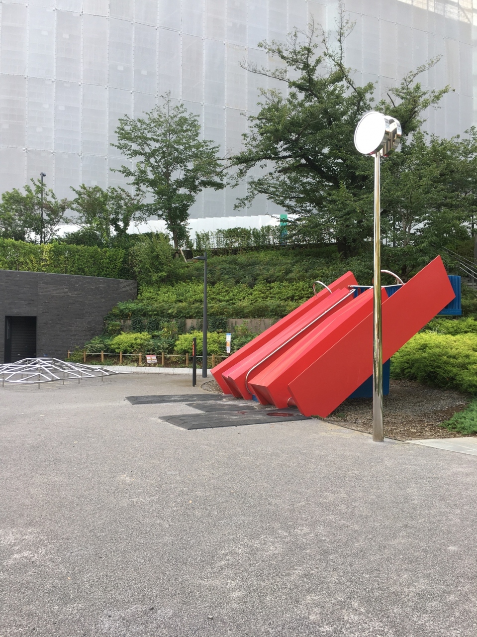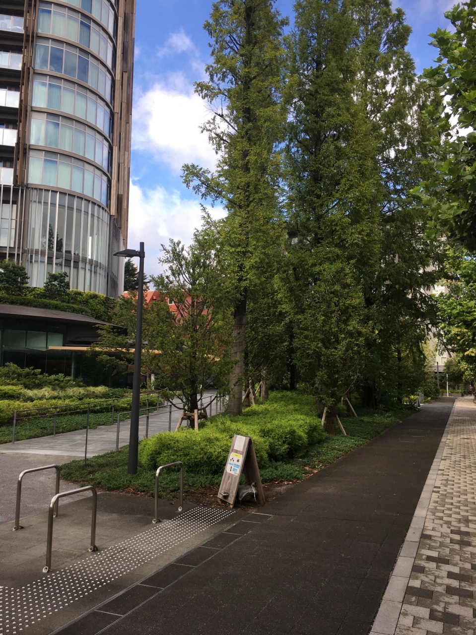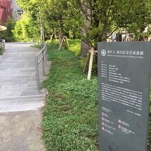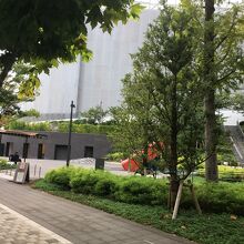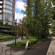 乃木坂の坂を下った道沿いにありました。小石と砂地のような地面で滑り台等子供の遊び場もあり、綺麗なトイレも完備していました。ベンチや水飲み場もあります。マンションが隣接していて、マンションのための公園に思えました。