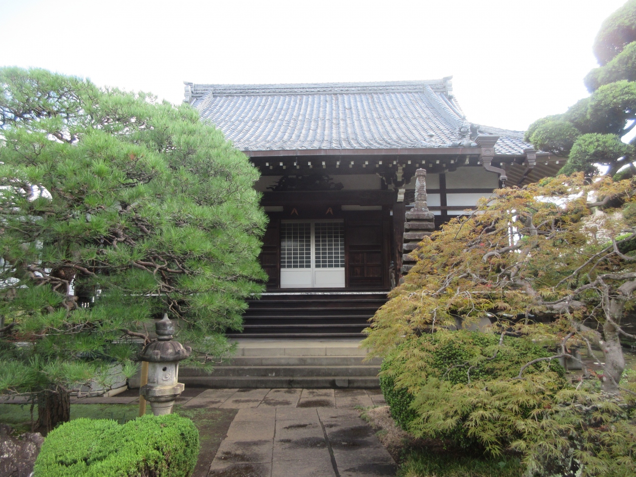 千歳烏山駅から20分ほどのところに造られている寺町を巡った際に立ち寄った法華宗の寺です。木造のどっしりした山門、山門を入ったところに広がる緑豊かで手入れが行き届いた境内、緑に中に配置された大きな石、本堂手前の松や紅葉、さるすべりの木など静かで心落ち着く寺です。広い境内が多い寺町の中では、境内はそれほど広くありませんが、手入れされた緑の庭が美しい寺だと思います。