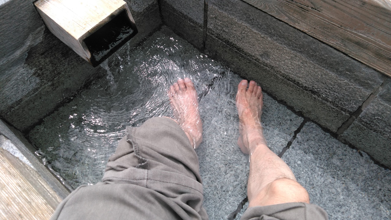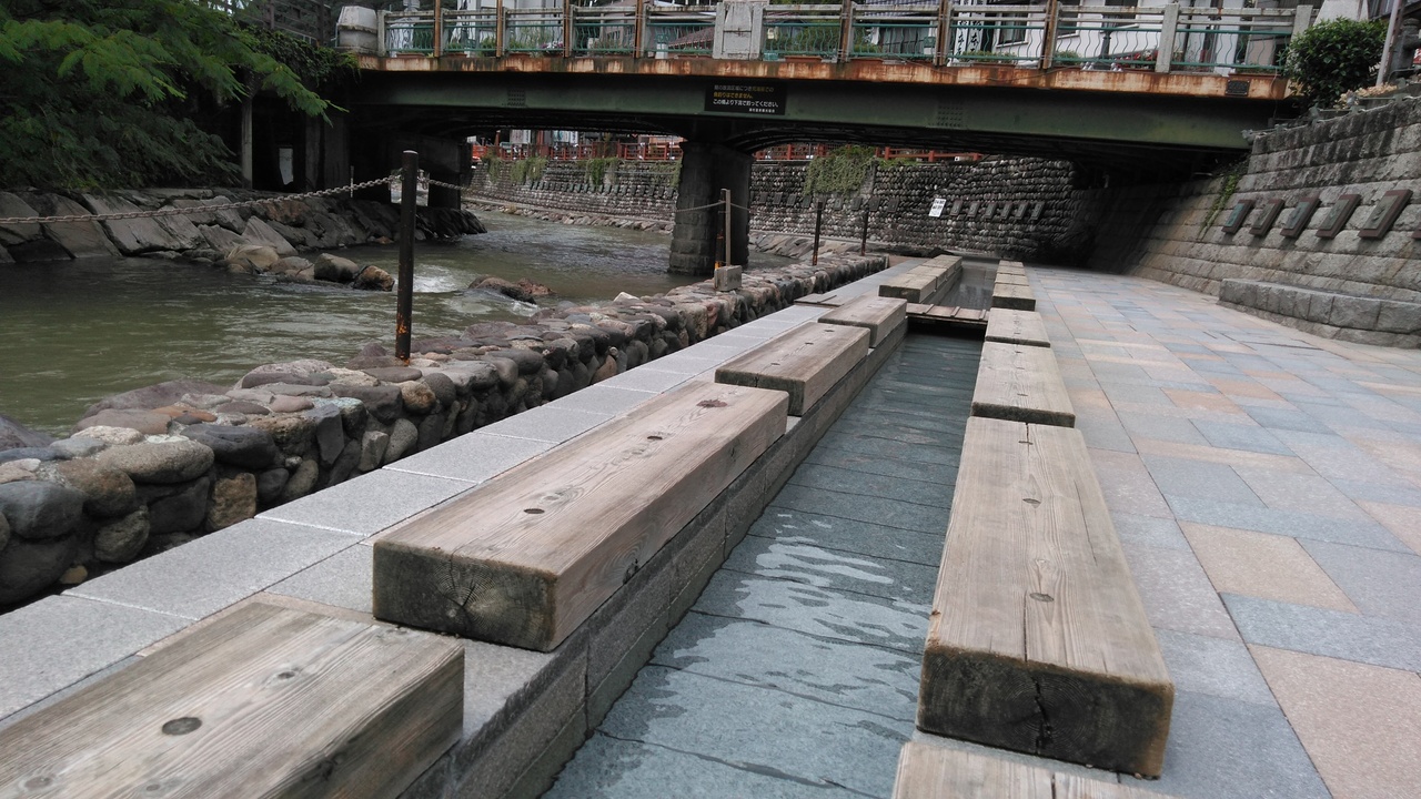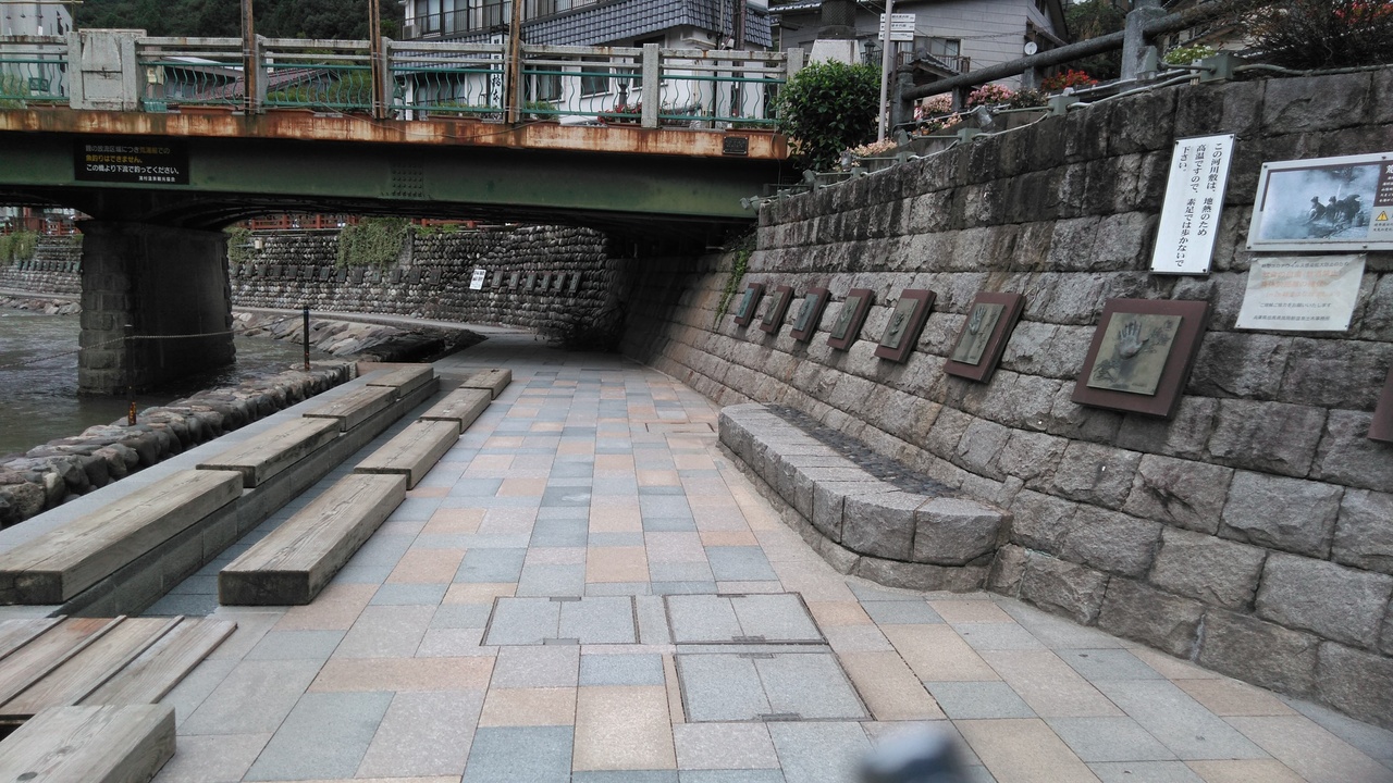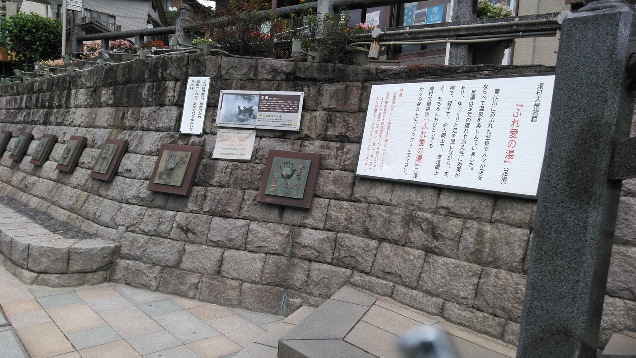 明日から兵庫県も新型コロナ変異ウイルス感染防止のための緊急事態宣言が発令されるが、その前での但馬地区のドライブ、いつもの通過点の湯村温泉に入る。憩いの観光場所である荒湯の横で春来川の右岸にある著名人の手形サインの展示がある触れ合い広場が魅力であり、そのそばの無料で足湯が楽しめる場所がとても魅力である。