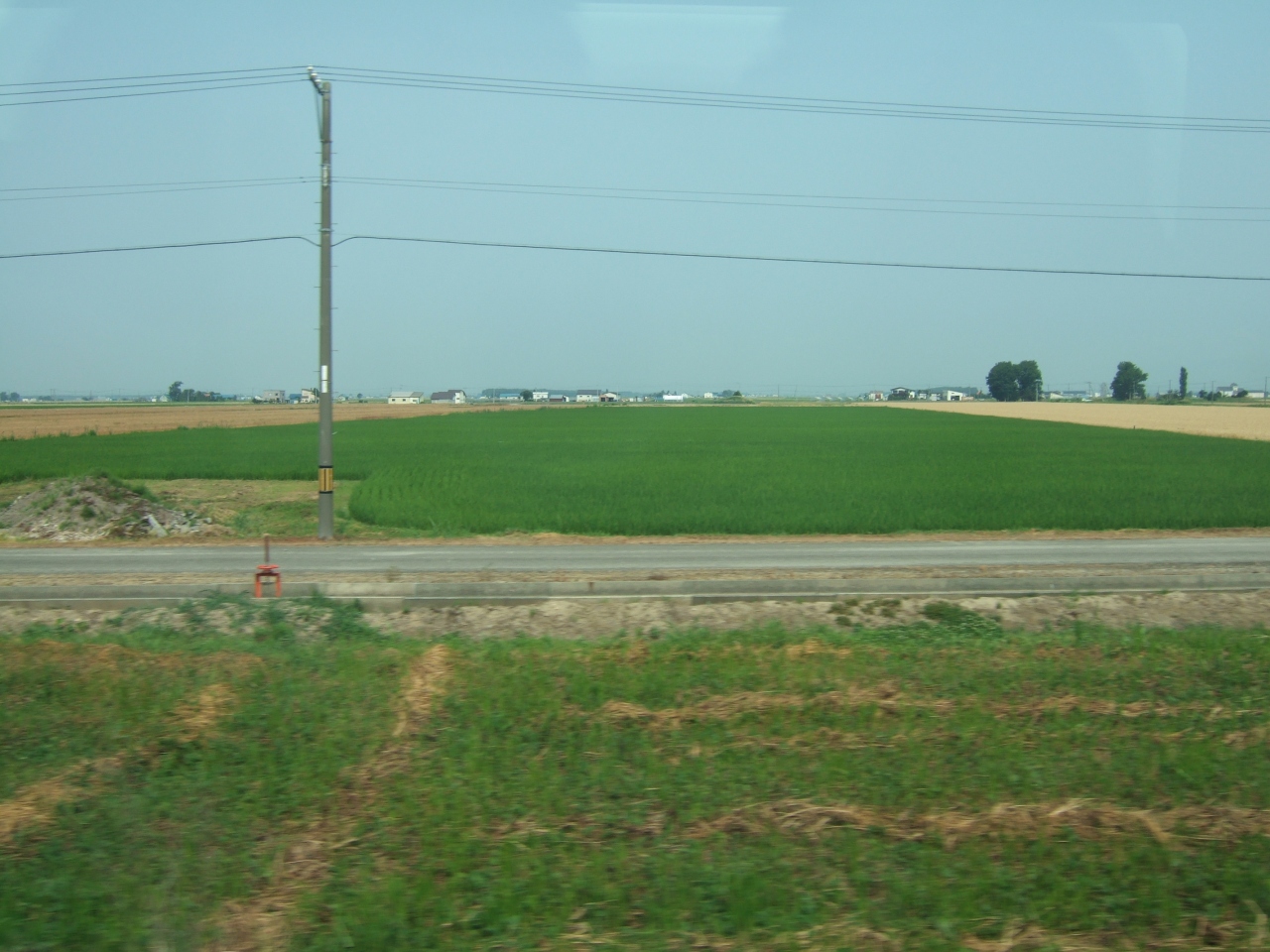 函館から札幌を通り、旭川までを結んでいるとても長い路線です。札幌から旭川まで特急で移動しましたが、直線が多い割りには揺れます。旭川の手前まではトンネルもなく、石狩平野を飛ばしていきますが、緑の水田と色づき始めた麦畑がきれいでした。