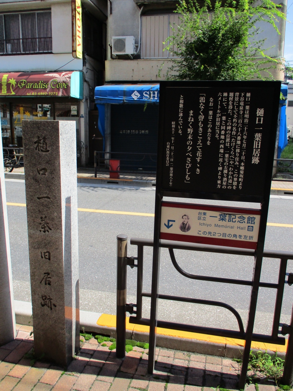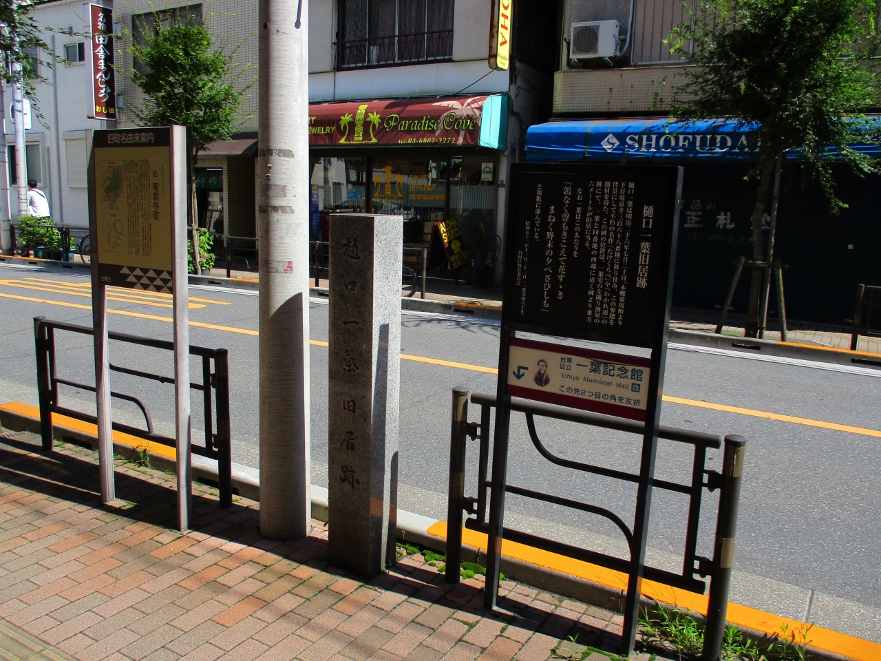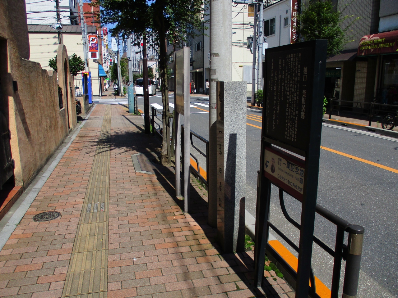台東区の竜泉周辺を散策していた時に、道路わきの歩道に案内板が立てられていました。昔この場所が樋口一葉が住んできた旧居跡だった案内板でしたただ案内板以外には何も残されていないので、当時の様子などわからなくて残念でした。