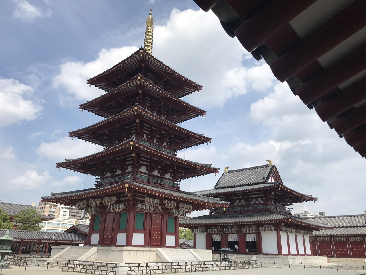 大阪で真っ先に観光に行きました。十五年ほど前、ここに来たら、もう閉まっていたのが悔しい記憶となっていたためでしょうか(笑)。今回はしっかり午前中に訪れましたが、暑い暑い。汗が噴き出ます。無料エリアでは六時礼賛堂が見ものです。赤と青の仁王がいる仁王門も楽しいです。中心伽藍は有料ですが、もちろん見ていきます。金堂と五重塔の組み合わせが画になります。