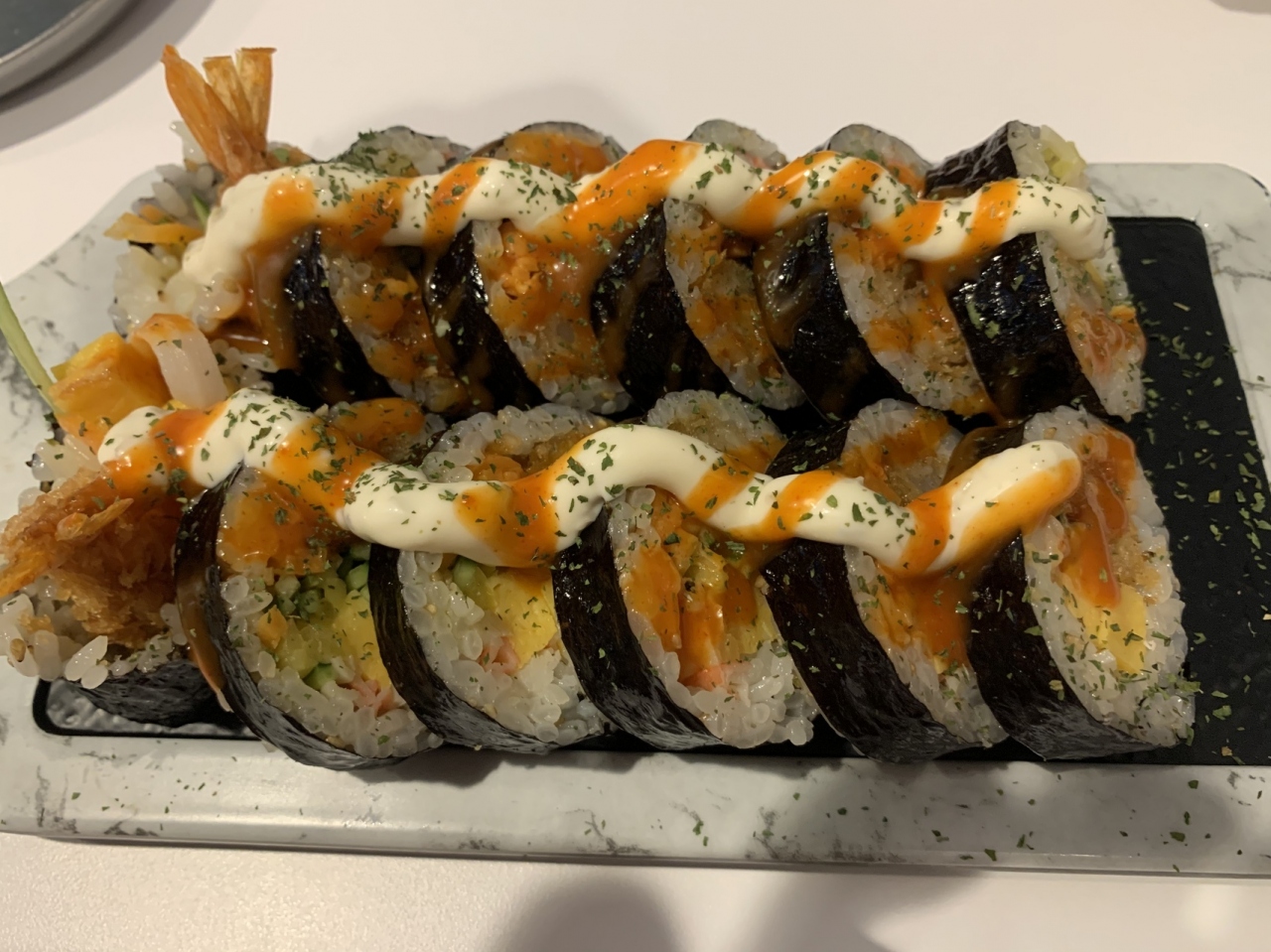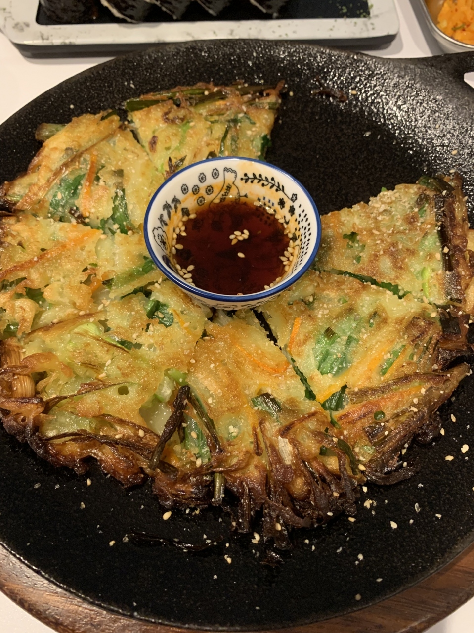 今回はランチタイムにエビフライキンパ・おでん・サムギョプサル・ニラチヂミを注文。