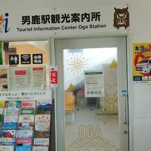 JR男鹿線男鹿駅構内にある施設。各種パンフレットを取りそろえ、これから向かう観光施設の情報収集をすることができた。