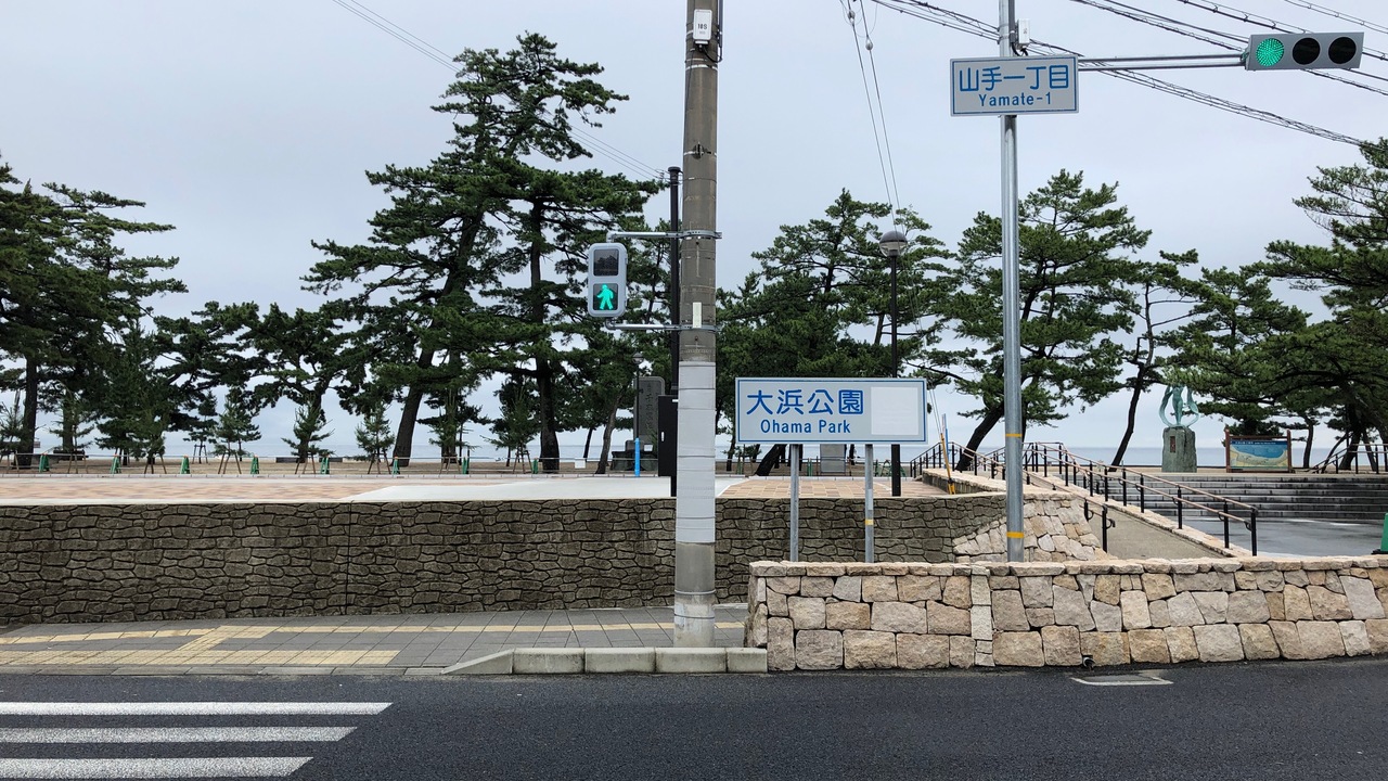 洲本市街地・洲本温泉の近くにある海浜公園です。大浜海水浴場があり、夏は海水浴が楽しめます。「日本の快水浴場百選」にも選ばれています。松林や淡路島の海岸線を見ながらの散策もおすすめです。なお、コロナのため、海水浴やバーベキューはできなくなっています。