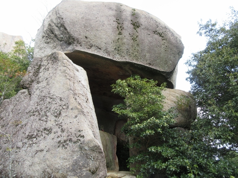 弥山の山頂近くまで行くと、大きな石が不思議な形で組み合わさっている所がありました。