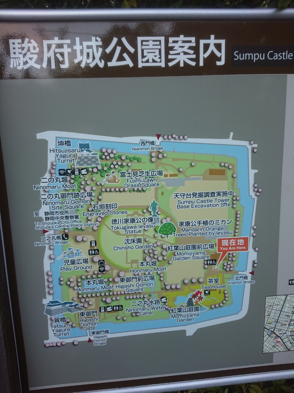 公園内は駿府城の史跡発掘が進められており、入れない区域もありますが、程よい広さで、家康公の銅像や駿府城の櫓などを見て回りました。