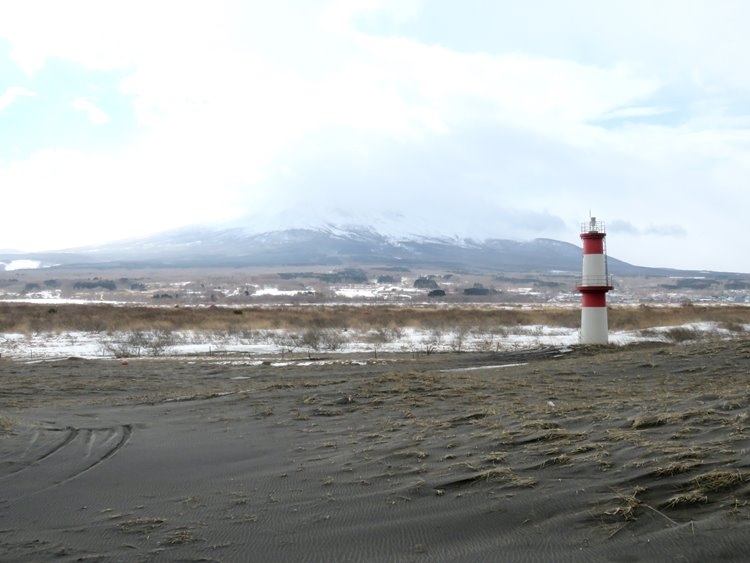 景勝地、と呼ぶには無理があります。基本的にクルマなしではアクセスできないと思ったほうがよいです。自分は森駅発の路線バス(1日数本)を駆使して1日がかりで向かいます。駒ケ岳のすそ野に広がる海浜草原。駒ケ岳も大沼側から見るのとはまったく別の山のようです。灯台があります。これがないと位置関係がわからなくなり、迷ってしまいそうな場所です。かつて観察されていたシロハヤブサは姿を現さなくなってだいぶ経っています。ちょうど室蘭側から噴火湾を越えて渡り鳥が到着しやすいので野鳥観察のスポットとしてはそれなりに人気があります。秋の渡りでのシギチ類、ムナグロやソリハシシギなどを観察したことがあります。渡りに慣れない若い個体がほとんどです。