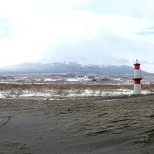 駒ケ岳のすそ野に広がる海浜草原にぽつんと灯台