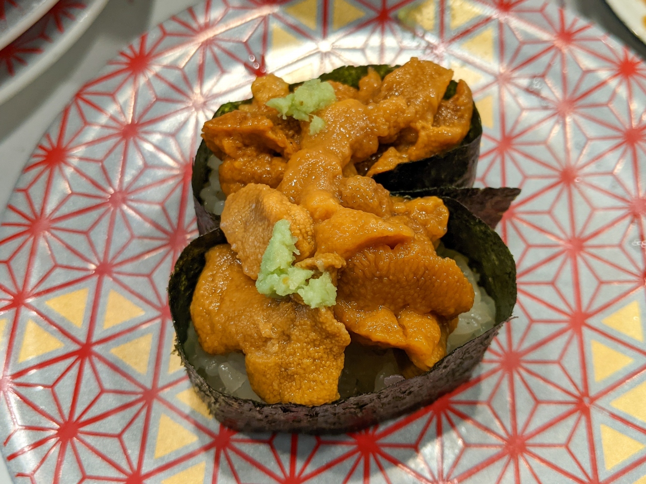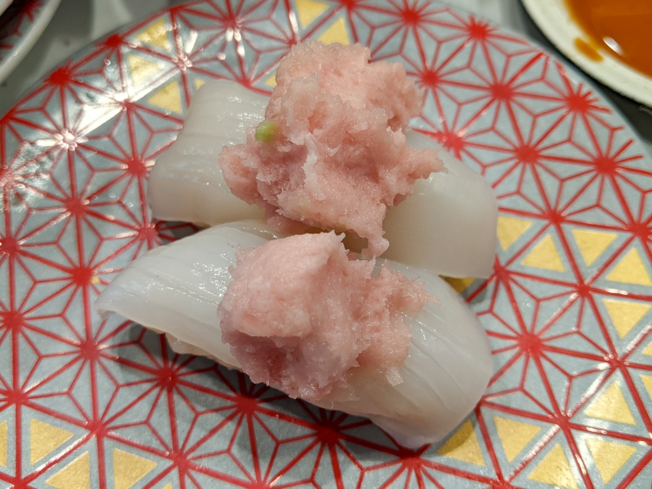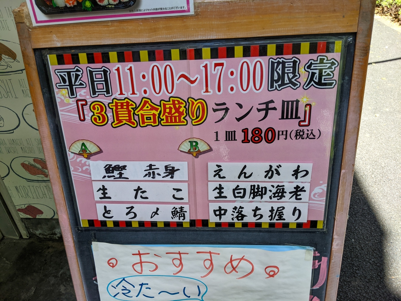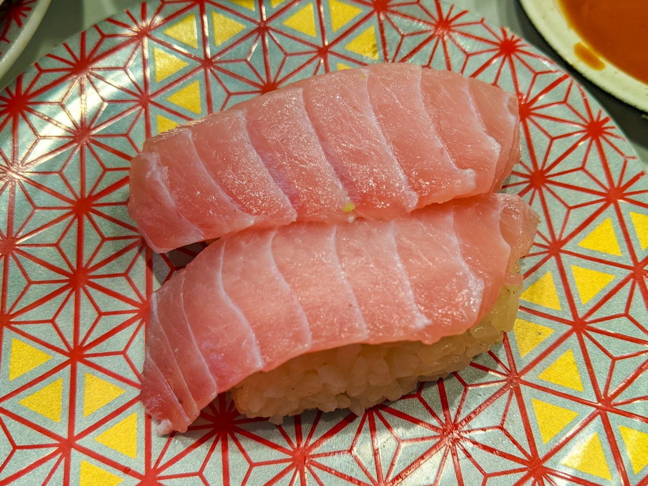 東京・神保町駅から東京ドーム方面に徒歩3分。回転寿司の「もり一」にランチに行きました。11時過ぎですので並ばずに店内へ。11時~12時迄の裏メニューもあります。今回は軽く食べたかったので・・・ ランチタイム限定の3貫セット(中落ち、えんがわ、えび)と「うに」を注文。3貫セットは良いですね。ネタは新鮮、一皿180円とコスパも良くランチの3貫だけでも良いかも。うには・・・普通でした。でも、180円であることを考えるとコスパは良いですね。そして、このお店の特徴は赤しゃり。赤いしゃりでうが、これは赤酢を使っているから。この赤酢は酒粕を長期熟成させて作られる旨味の強い酢でして、それを使っているのでしゃりが美味しいです!ネタもしゃりも美味しい回転寿司です。東京ドームへの野球観戦や神保町でスポーツ店めぐり、古本屋めぐりの時に是非! 今日もごちそうさまでした~