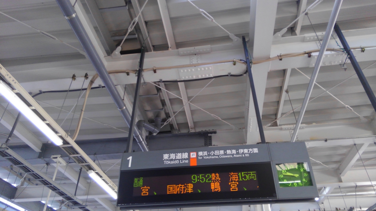 東海道本線はあまり利用することもなかったのですが、今回は色々調べるとJRを利用するよりも早くに到着することがわかり東海道本線を利用することにしました。同じ区間を走っている山手線、京浜東北線と比べるとちょっと時間の短縮になるし、停車駅の数が少ない(一区間が長い)です。休日でしたが空いていました。