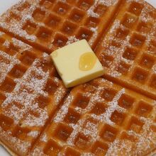 内容は、ワッフルと、紅茶(コーヒーも選択可だが、当たり前の様に紅茶にした)。ホットティーの場合、ポットで提供される。
