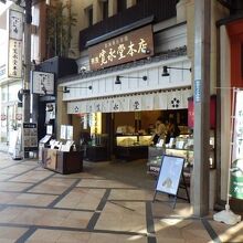 近鉄奈良駅の近くのアーケード街に面する和菓子屋。