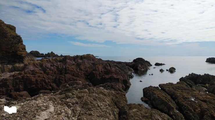 なだらかな美しい弧を描いた地形が続いており、波も静かで海水浴に利用されていた。水族館付近になると岩場の風景に変わり、独特の形態の岩場が連なっていた。