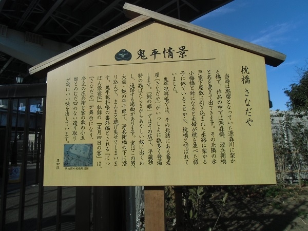 近くにある説明板によると、鬼平犯科帳にも北詰にある蕎麦屋「さなだや」とともに頻繁に登場するそうです。