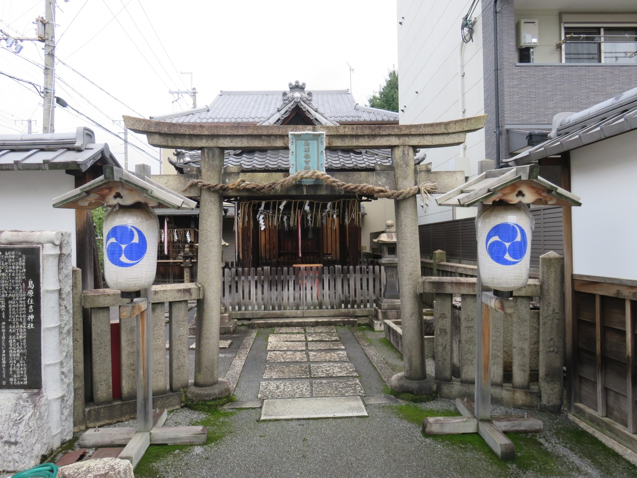 見ごたえという点では小さく、いまいちという感じだが、京都の旧花街島原の西の入口、かつての西門近くにある神社です。せっかく島原に来たのだからとしっかりとお参りをしておきました。島原の人々の信心が集まっている神社です。