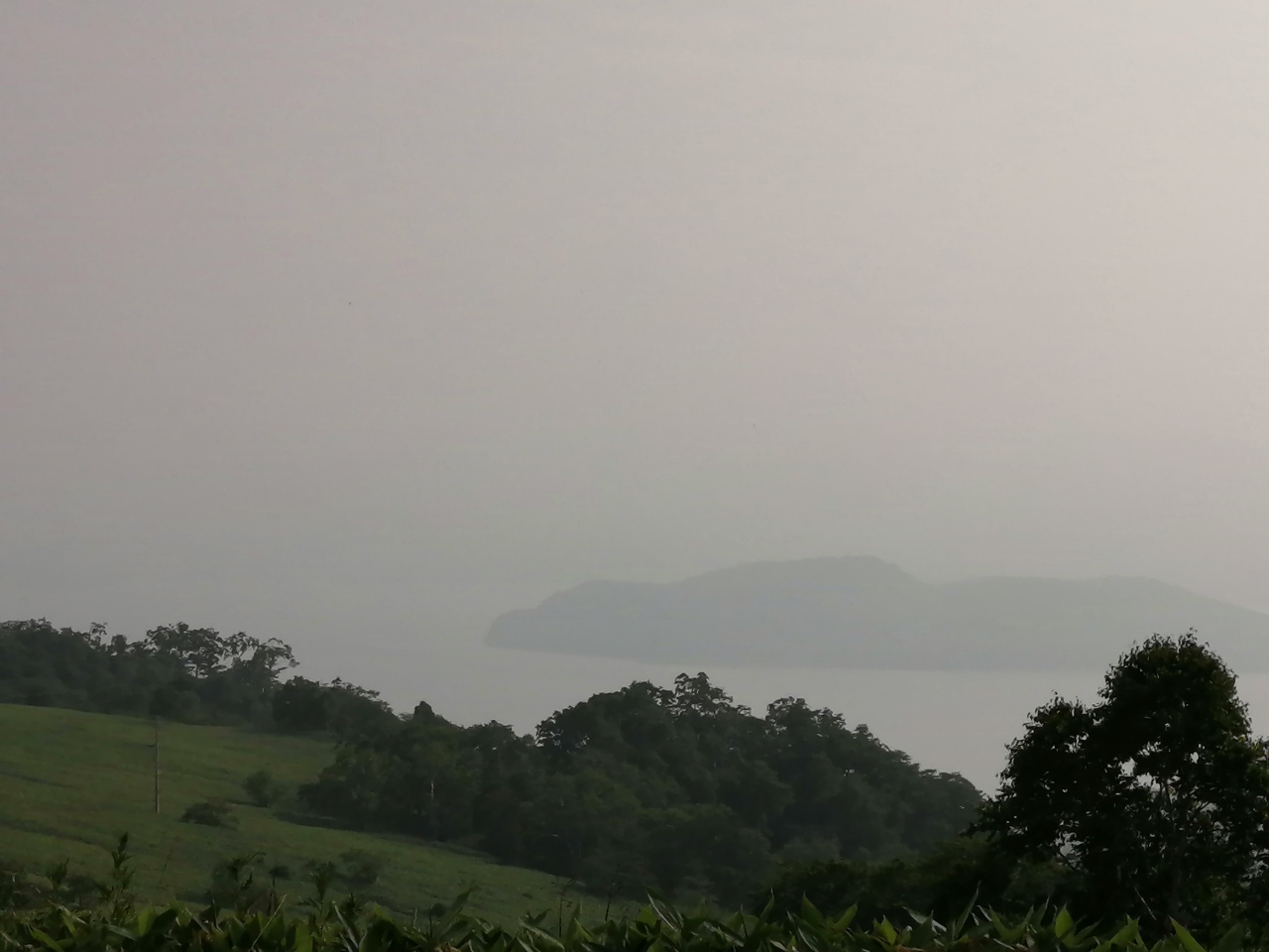 女満別の朝日ヶ丘公園のひまわり畑を観て,釧路へ向かう途中に寄りました.美幌峠の道路脇のパーキングエリアに駐車し,夕刻近くの湖を眺めてみましたが,霧で霞んでいました.もう何年前になるでしょうか?屈斜路湖の恐竜クッシーが話題になりました(笑).