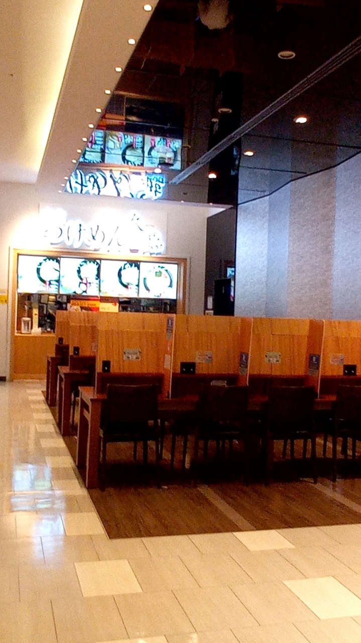 フードコートの席もコロナ対策となっていて、おひとりでも利用出来るように仕切りが設けられています。