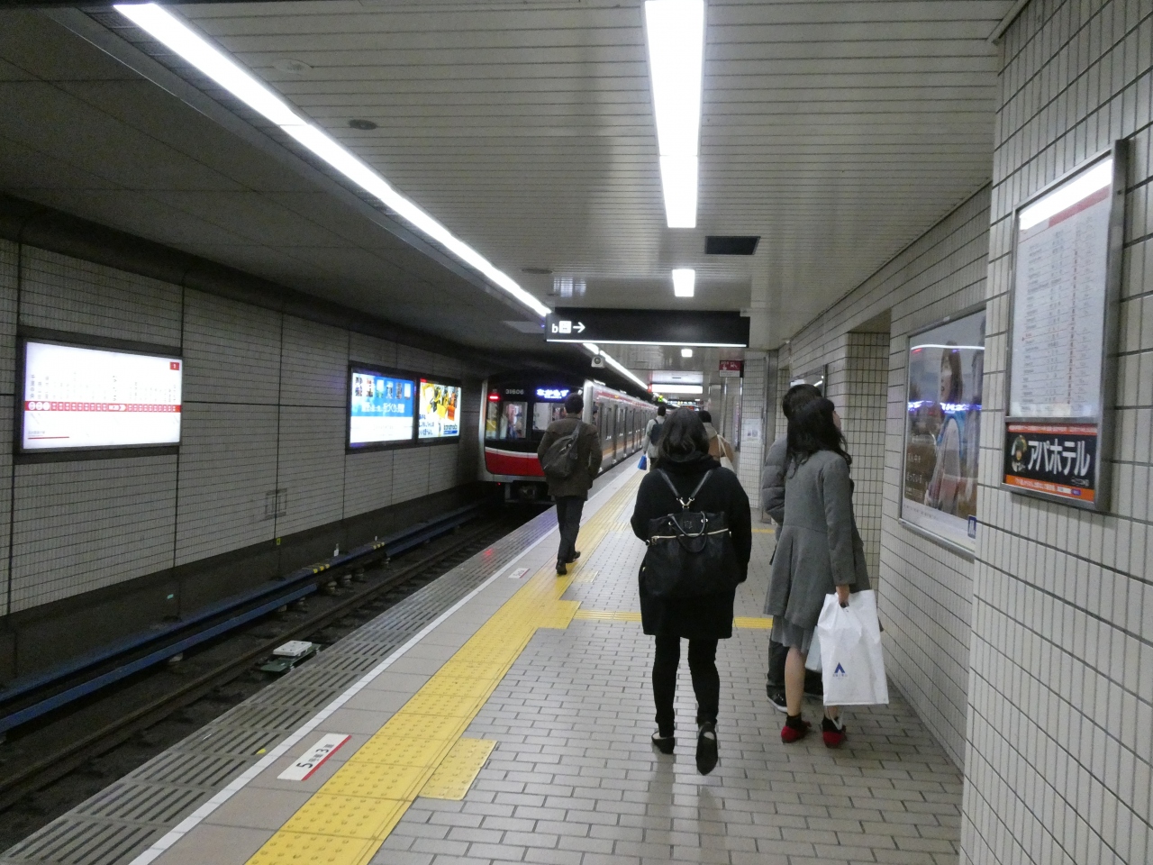 御堂筋線独特の開放的なドーム型の天井やシャンデリアも無く普通の地下鉄駅構内です。