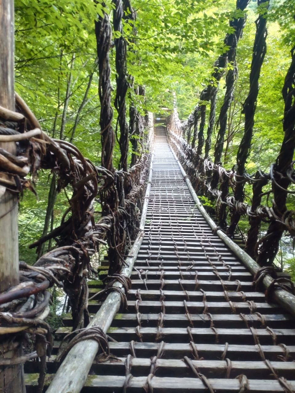 鳴門市から向かいましたが、細い道路(山道)を譲り合ったりしながら到着しました。料金は550円で階段を下っていくと、手前に男橋、奥に女橋があって両方渡れます。男橋のほうが大きくて、渡るのに恐怖感がありました。野猿という乗り物は8月時点では利用不可でした。