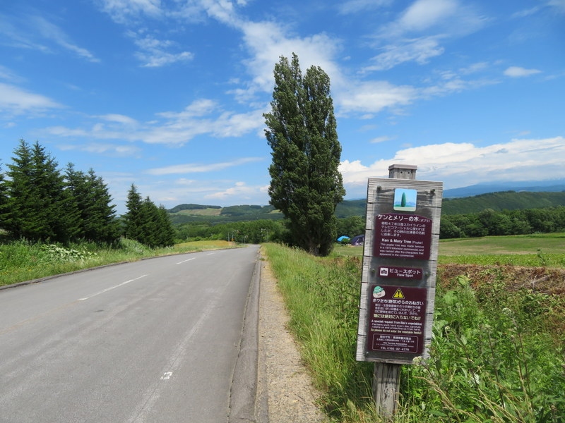 美瑛の丘にある有名なポプラの木です。昭和47年「スカイライン」のCMロケ地として起用され、そのCMに登場するカップルの名前からケンとメリーの木と名付けられました。