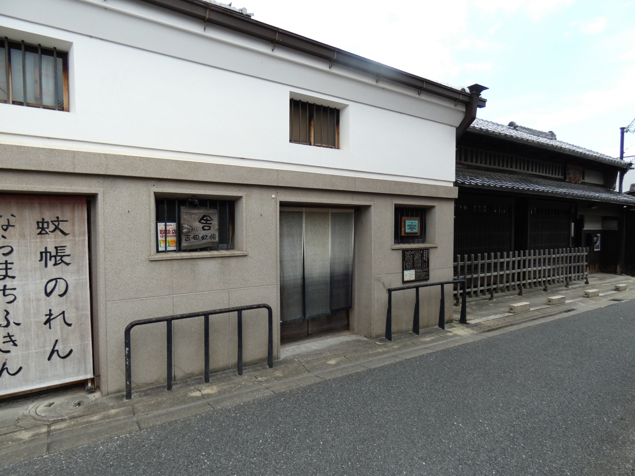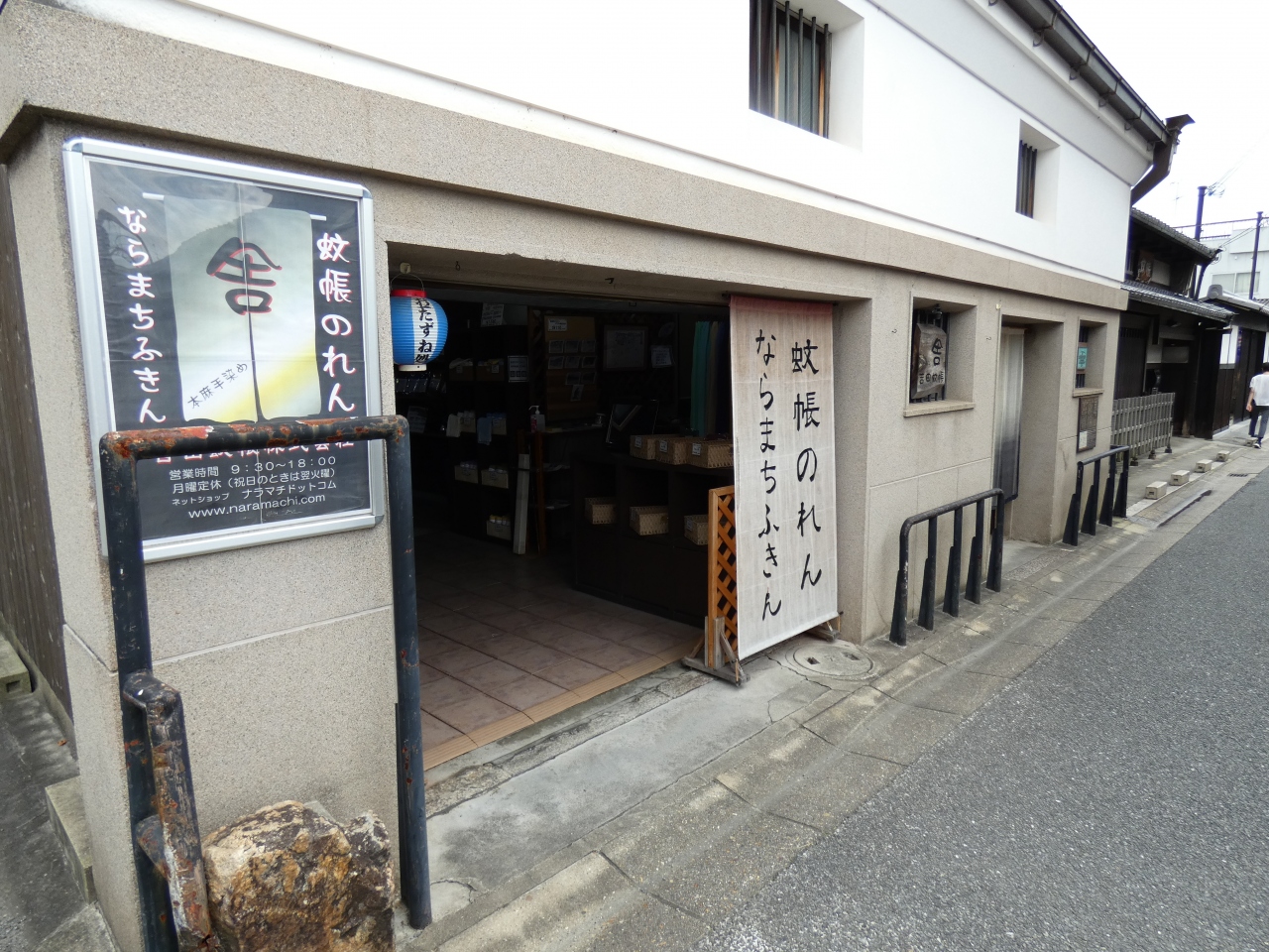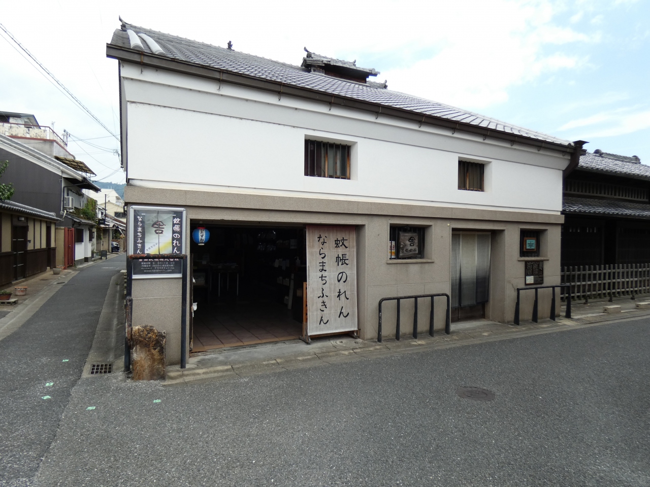 元興寺の旧境内の観光名所「ならまち」の中心部にある漆喰大壁造り土蔵風建物の老舗蚊帳店。大正10年創業で奈良特産の蚊帳生地でふきんや暖簾などを製造販売しています。蚊帳生地が奈良特産とは知りませんでした。TVで見たことがありました、ふきんは吸水性抜群で。店内は蚊帳店の雰囲気全く無しで洒落た空間です。洒落た奈良土産としていいですね。因みに隣の邸宅と店舗は重要文化財指定です。
