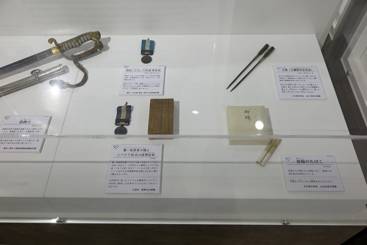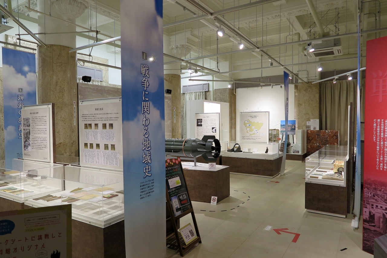 今も昔も名古屋は日本の航空機産業の中心地、戦前も九九艦爆の愛知航空機や愛知時計、ゼロ戦の開発が行われた三菱重工名古屋航空機製作所などもあったことで、幾たびも大空襲に襲われ、名古屋城も天守など多くが消失しています。現在の「愛知県庁大津町分室」は、そんな名古屋城の間近にありながら、空襲を耐え抜いた貴重な近代建築です。設計者が黒川紀章氏のご尊父というのも凄いです。館内には「愛知・名古屋 戦争に関する資料館」があります。少し小ぶりなサイズではありますが、名古屋第3師団、名古屋における大空襲、傷痍軍人さんの史料などが展示されており、見ごたえがあります