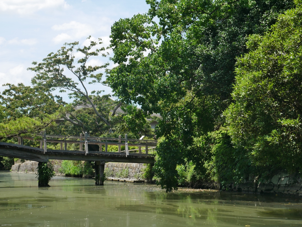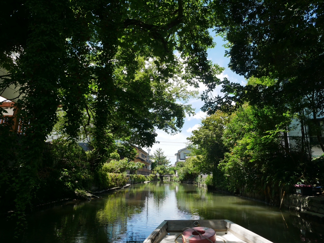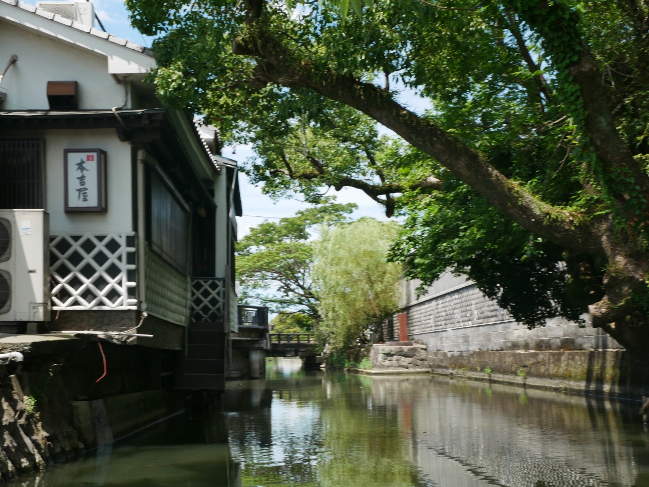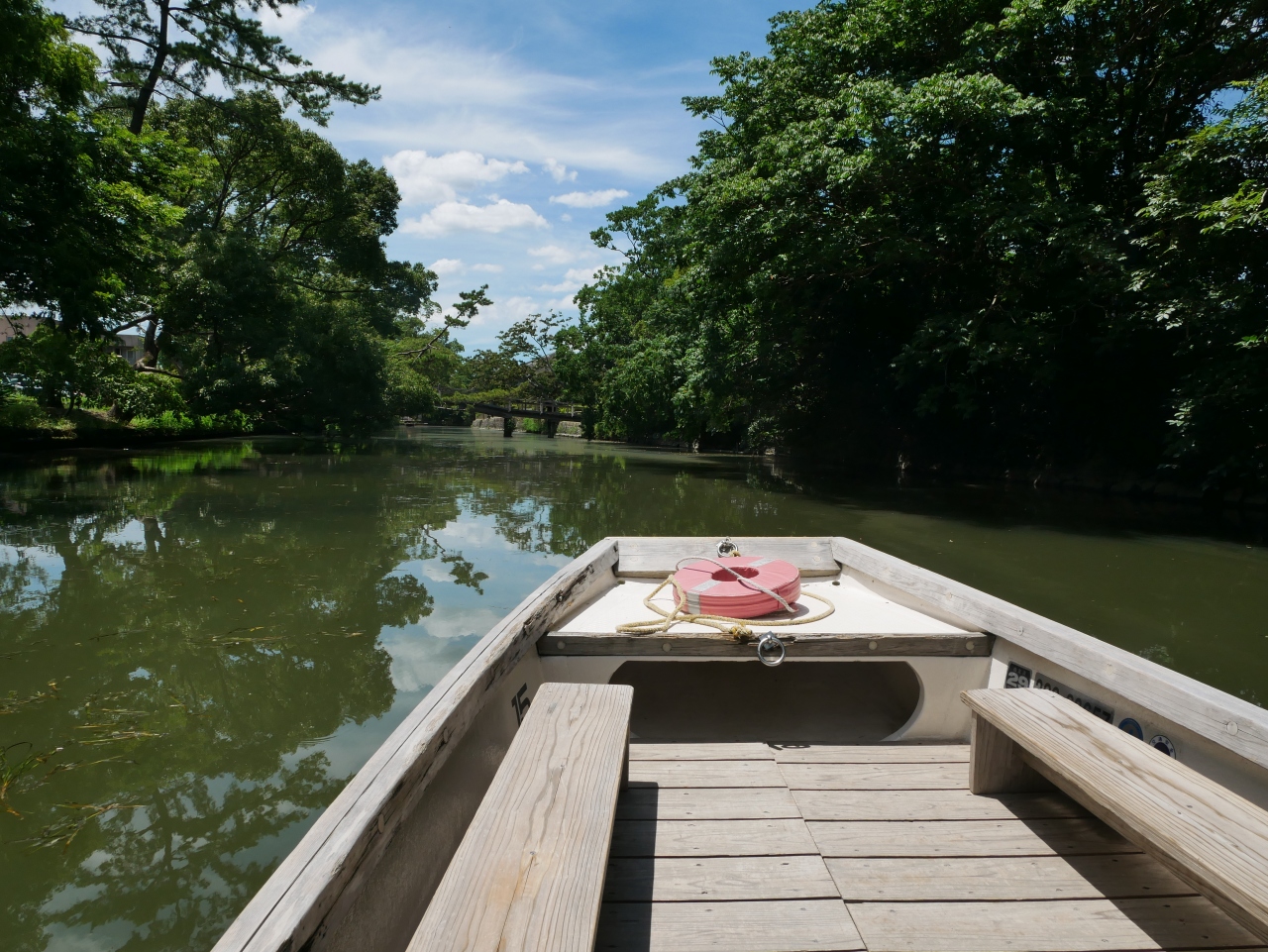 柳川といえば、やっぱりどんこ船でのお堀めぐりですよね、船頭さんの説明を聞きながら、ゆっくり景色を眺めることができます。途中、木の生い茂っているところを通ったり、倉庫みたいのがあったり、大小の橋の下をくぐったり、見どころ満載でした。