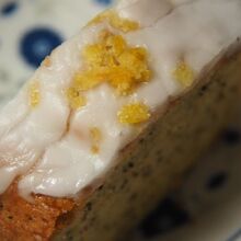 茶葉を混ぜ込んで焼き上げたパウンドケーキに、シュガーフロスティングを施し、刻んだレモンピールをトッピング。