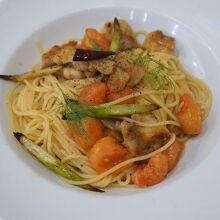 ジューシーな若鶏と、トマトの甘さと酸味を堪能出来るパスタ。