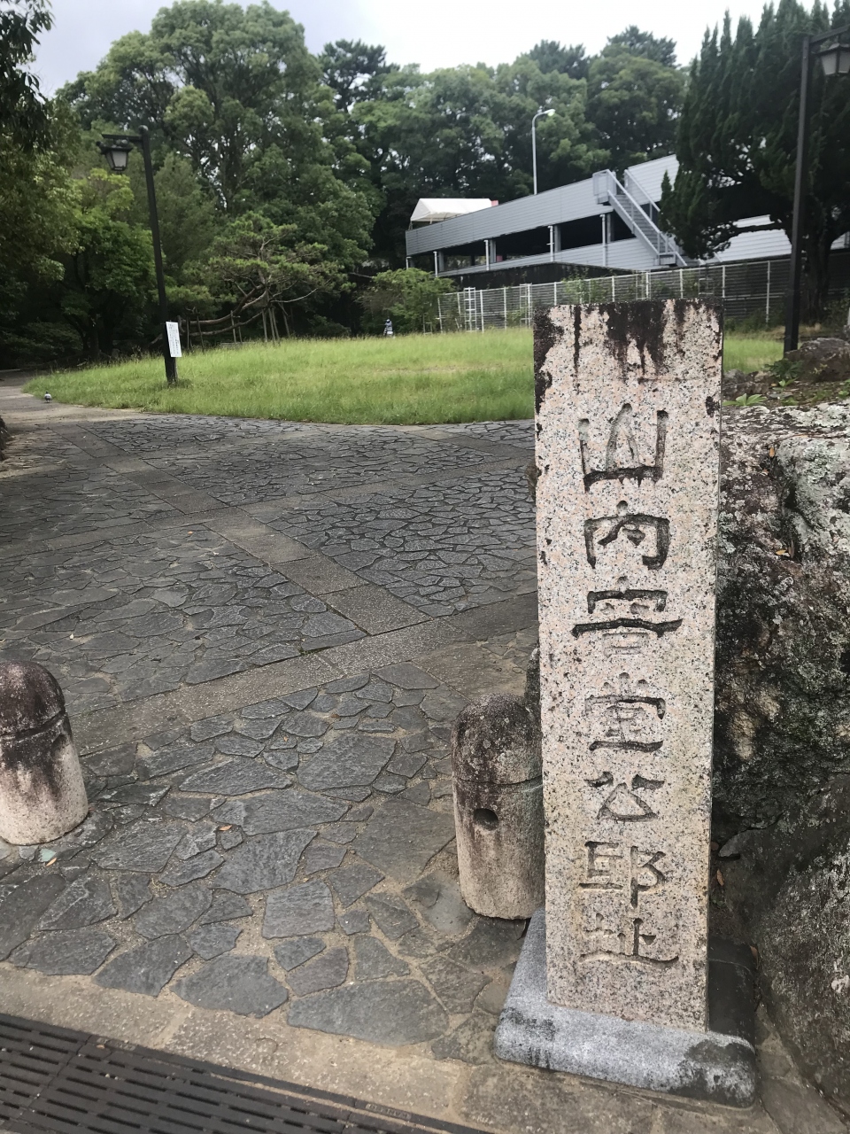 高知城を南に行ったところにある公園です。この公園、何の変哲もありませんが、実は、坂本龍馬の時代の土佐藩主である山内容堂の公邸跡なのです。公邸跡と行っても碑が立っているだけで、特に何もありません。ただ、それらしい木などはあります。