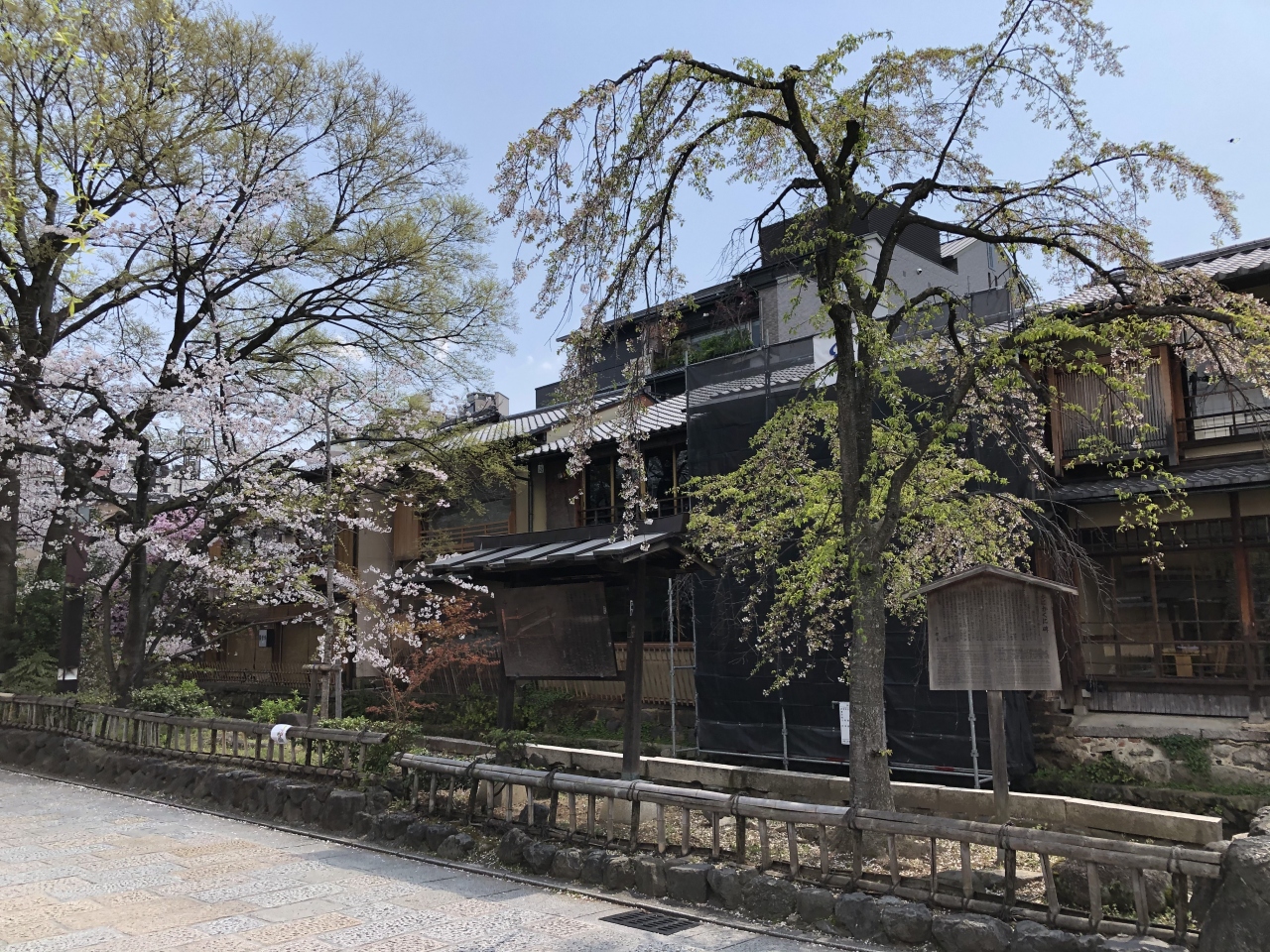 祇園界隈・白川沿い巽橋の近くに「かにかくに碑」があります。明治時代の歌人、吉井勇が詠んだ詩で、石碑には「かにかくに 祇園はこひし 寐るときも 枕のしたを 水のながるる」と詠まれています。周りの雰囲気に解け込んだ歌碑の前では多くの観光客が記念写真を撮っています。