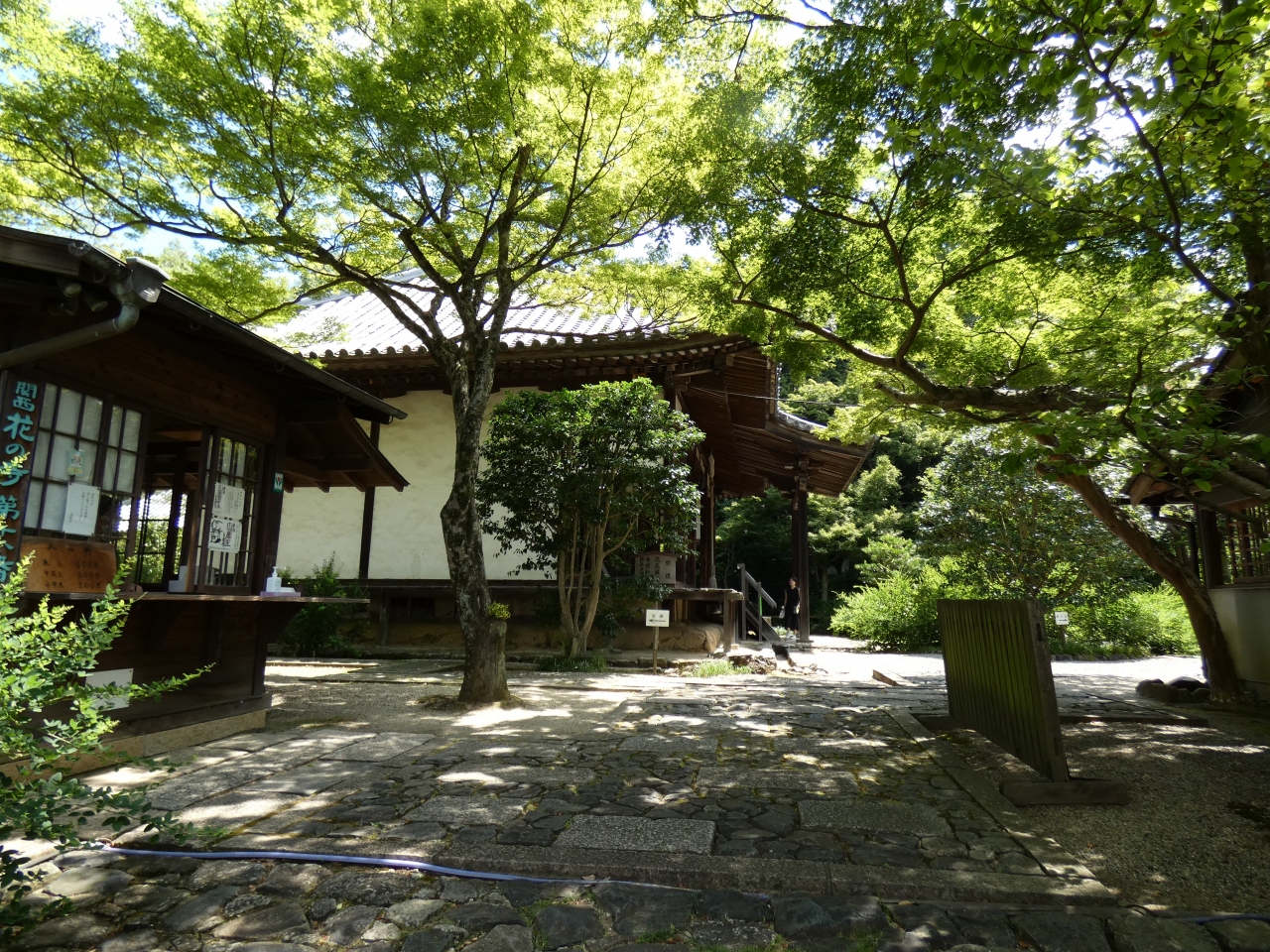 奈良市の南東部で山辺の道奈良道からチョット東へ参道と石段を上った高円山麓に建つ真言律宗の寺院。関西花の寺第18番札所で花の寺として人気が高いです。寺伝では当地は和銅年間(708~715)天智天皇の第7皇子・施基親王の山荘があったとされますが創建については不詳です。百段ほどの石段を上った境内は周りと隔絶した静寂がります。椿(3月下旬~4月中旬)と萩(9月下旬~10月初旬)の時期が良いみたいです。