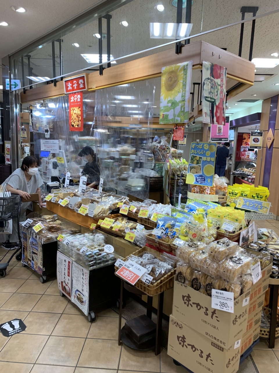 市営地下鉄の改札を抜けて一番近いエスカレーターを上がって食料品外に入るとまず太子堂でお菓子を購入。