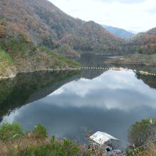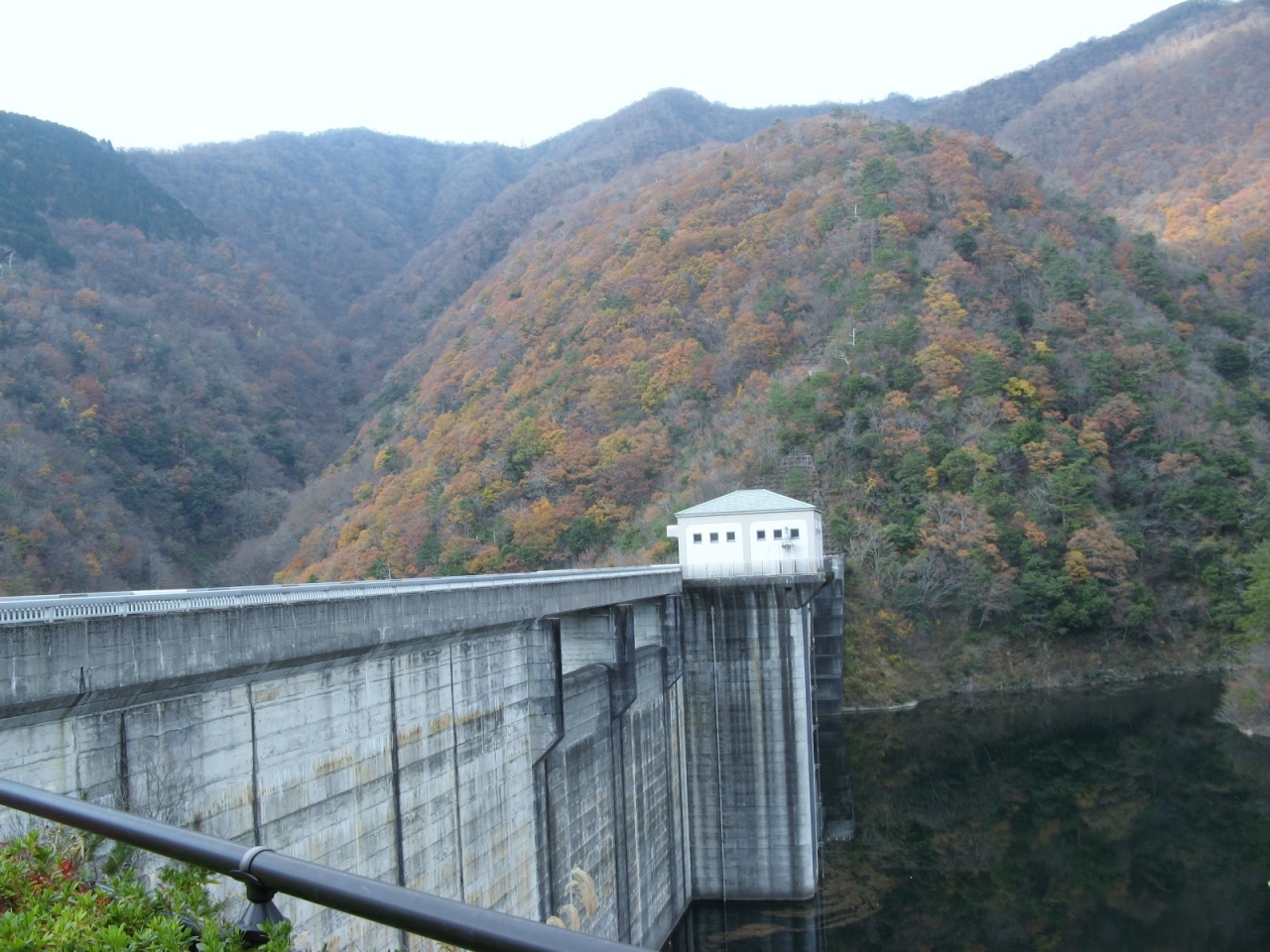 ダムの高さ80.5m、堤の長さ225mという大きな重力ダムで、堤の上を歩いてみて回ることができました。訪れたのが11月でダム周辺の紅葉がとても美しかったです。ダムの傍にある管理所に立ち寄ってダムカードをもらうことができました。