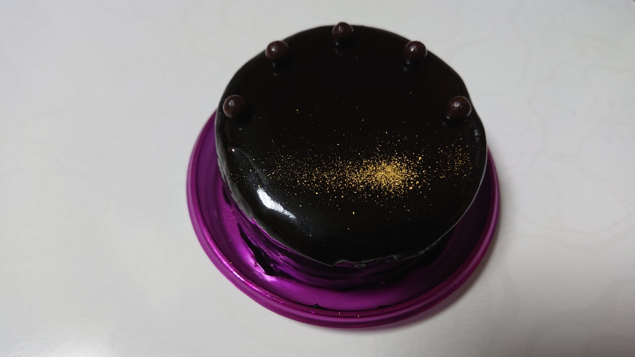 今回は、ガトーショコラ、を購入しました。まず、ケーキ下部の受け皿の、鮮やかな紫色が、チョコレートの黒色を引き立たせているのが、良い感じでした。食べてみた感想としては、チョコレートの味が濃厚にするスイーツだな、と感じました。