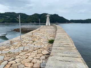 御手洗重要伝統的建造物群保存地区の南側の少し離れた所に、この波止はありました。江戸時代末期に建設されたとの事で、現代の様なコンクリートの造りではなく、切り出した石を整然と並べた造りとなっています。この波止の上を、先端の灯台のところまで歩いてみたのですが、石造りという事で、意外に歩き難いので、少しだけ注意が必要です。