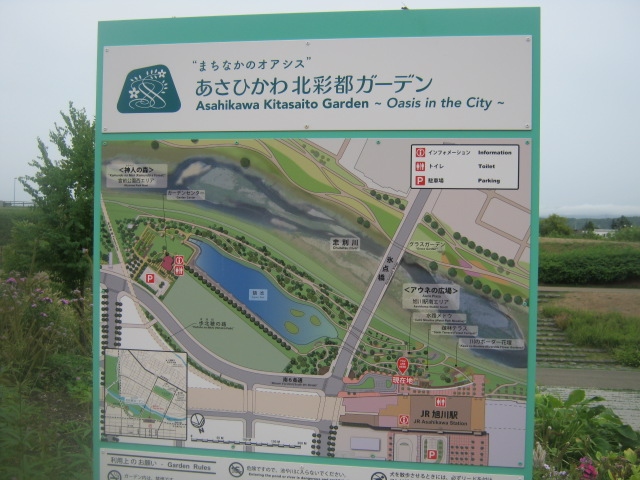 旭川駅前の南口側に拡がる忠別川沿いに東西に続く屋外型のガーデンですが、ここは晴天時には気持ち良く過ごせる一方で、あまり暑い日だと日差しを凌げるあずまやとかがないので、雨天時も含めて、ちょっと散策には辛いことが多いと思います。
