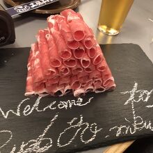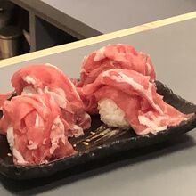 注文してからスライスして提供されるラム肉は、冷凍肉は一切使用せず、生の柔らかい状態で提供されます。従って冷凍肉特有のパサパサしたお肉ではなく、薄いのにしっとりしています。羅臼産の天然昆布を使った出汁汁でしゃぶしゃぶすると、さらに余計な脂が取れて美味。特製のポン酢でよりさっぱり食べられます。牛肉のしゃぶしゃぶよりもヘルシーで、ジンギスカンよりもクセがなく。たくさんお肉が食べられます。また、元祖炙りラム肉寿司は、生のラム肉(しゃぶしゃぶで食べるもの)を俵おにぎりに巻いて、バーナーで炙ったものをわさび醤油で食べるもので、脂乗りがちょうど良く絶品。