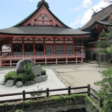 レンタカーを使って行きました.バスもあるようですが本数が限られていて,この神社以外にも見て回る場合には,車がないと大変だと思います.社殿は国指定の重要文化財で,赤い建物が夕日に映えるのではないかと思いました.現在の建物は江戸時代に建てられた物だそうです.非常に歴史を感じさせる建物で,時間があれば是非足を伸ばして欲しい場所です.