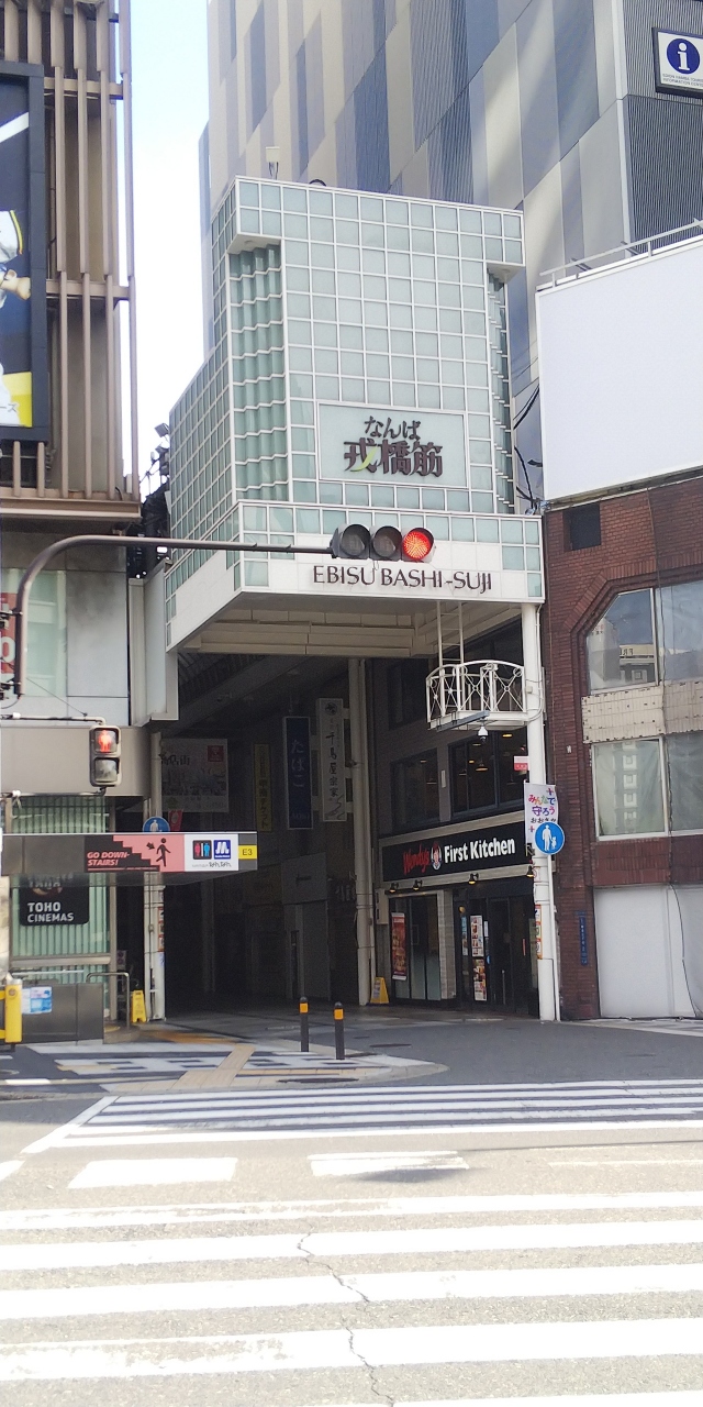 戎橋筋商店街は道頓堀川にかかっている戎橋の北側と南側にある商店街です。今回は朝の8時過ぎに行きましたので、お店もマクドナルドぐらいしか開いていませんでした。観光客よりも通勤のヒト達のほうが多かったです。