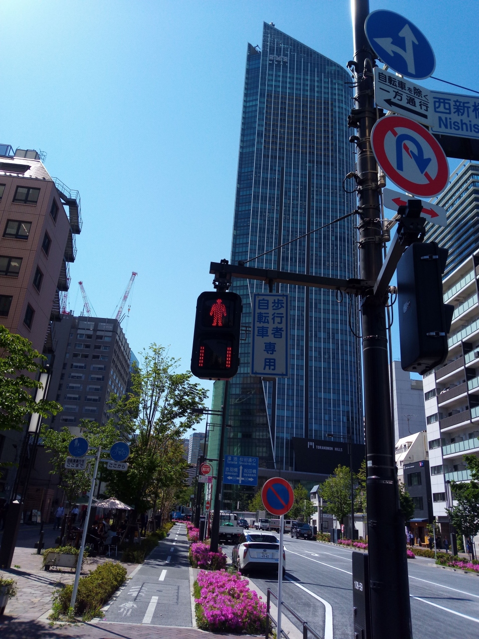 虎ノ門ヒルズには、おしゃれな商業施設・飲食店もあり、絶対見逃せない観光アトラクションです。しかも、添付写真のように、ビルの建築様式もモダンでたいへんきれいなので、要注目です。都心ですが、添付写真のように、周囲にはサイクリング道路が整備されています。