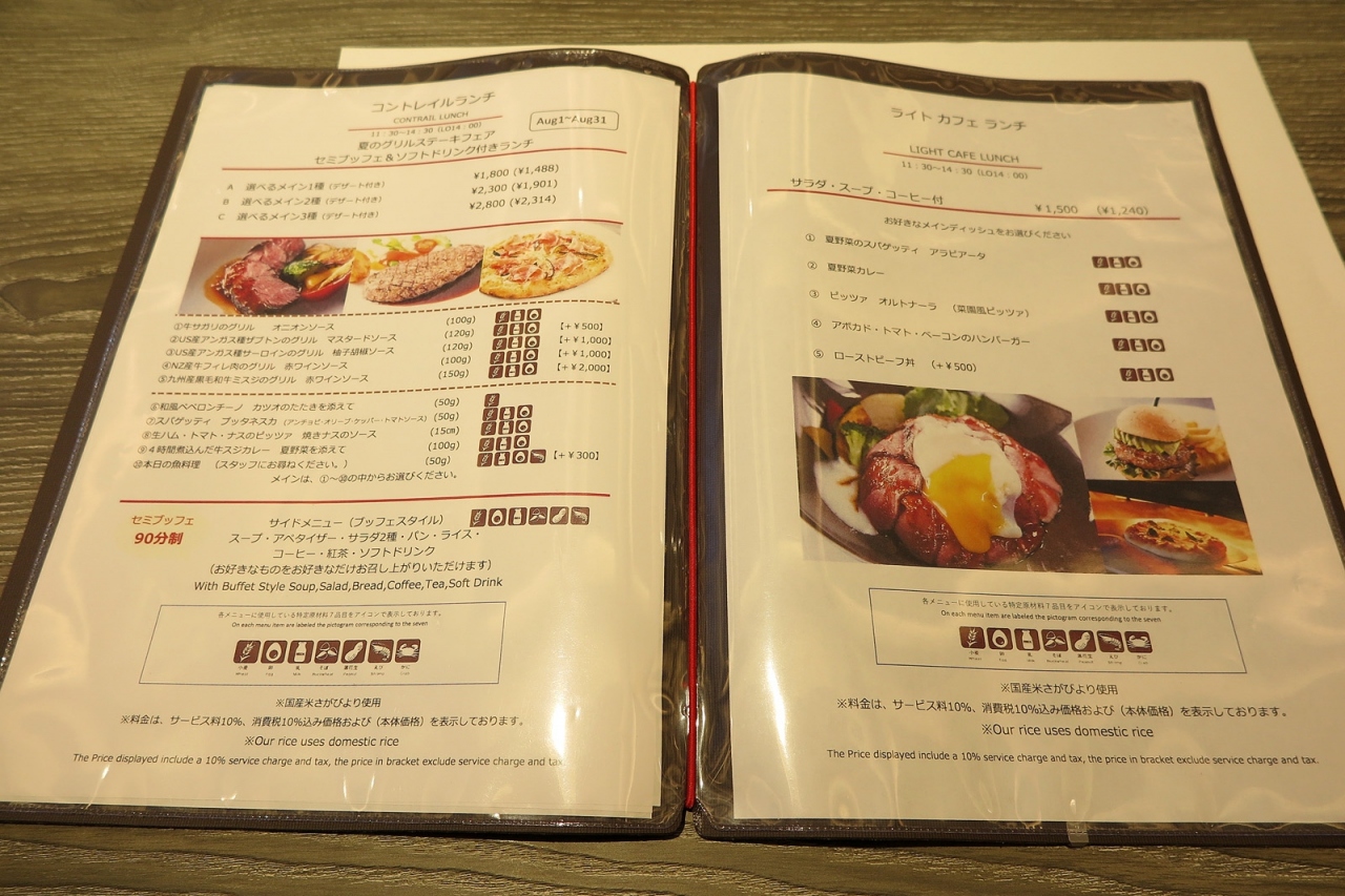 - コントレイルランチ、選べるメインは1~3種類、私はメイン2つを選択して料金は2300円、One Harmony会員は5%割引で2185円です