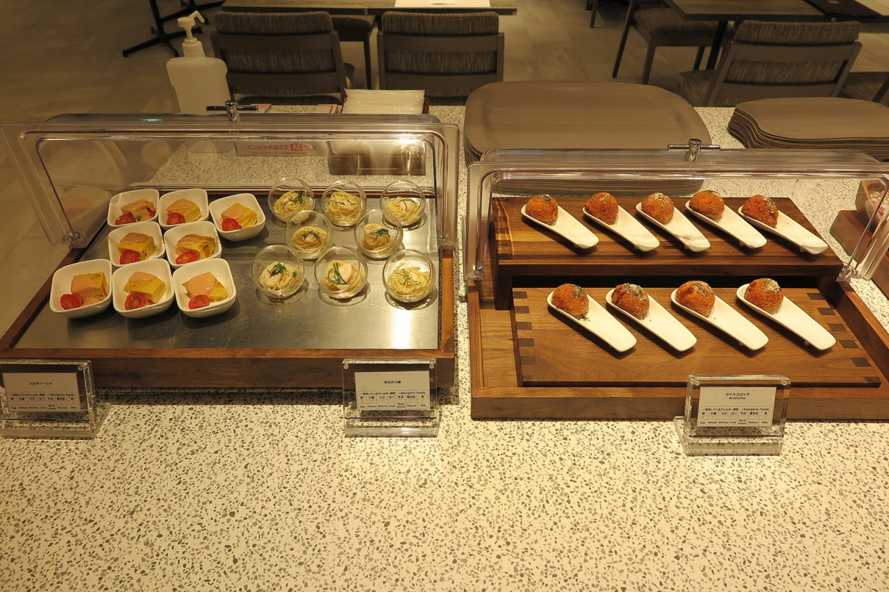 2021年3月15日に開業したばかりの「ホテルJALシティ福岡天神」、もちろん、こちらの「カフェ コントレイル」もキラキラと輝いてみえました。注文したのはメインが2つ選べるコントレイルランチで2300円(One Harmony会員割引で2185円)でした。とりわけメインの1つ「牛サガリのグリル オニオンソース」は、予想以上のレベルの高さでした。ブッフェ台の料理もコロナ対策で個別盛りになっていて安心でしたし、パンの品揃えも楽しいものでした。接客も気持ちの良いもので知詩よ。
